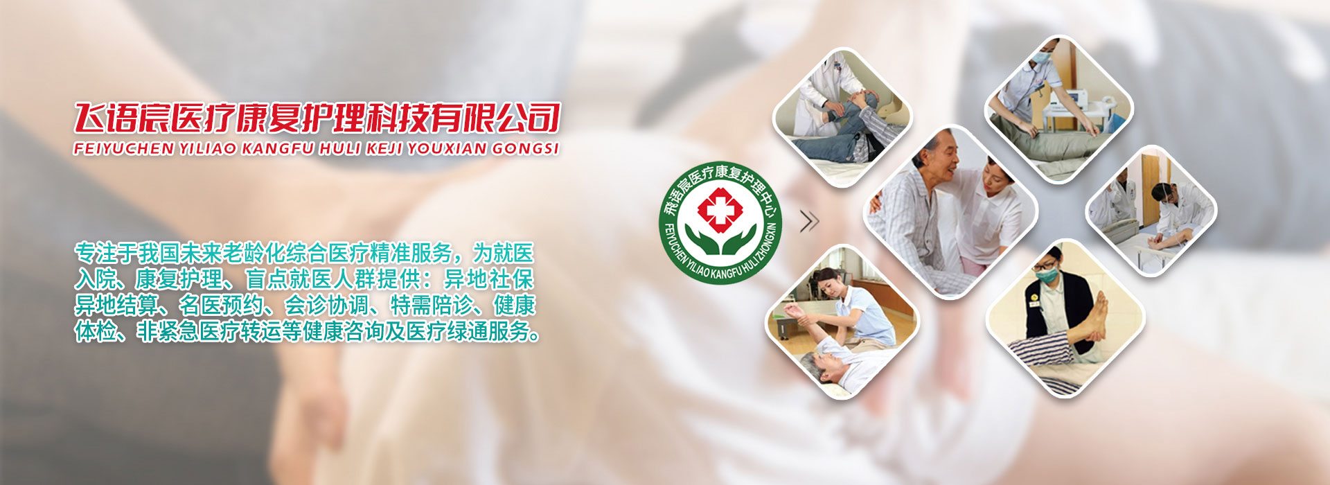 •   深圳市飛語宸醫(yī)療康復護理科技有限公司,是一家專注于健康產(chǎn)業(yè)領域中具有卓越影響力的創(chuàng)新型服務企業(yè)。公司致力于為社會提供全方位、高品質的醫(yī)療、康復、護理及人工智能綠通就醫(yī)服務。憑借前沿最先進的醫(yī)療技術信息和專業(yè)的團隊,注重服務深耕細作,為解決健康綠通服務壁壘,相繼融通全國各地數(shù)百家實力派醫(yī)療機構、養(yǎng)老機構、護理機構、陪診機構、陪護機構、助浴機構的社會資源力量,使醫(yī)療綠通精準服務于社會。